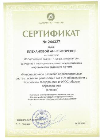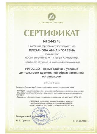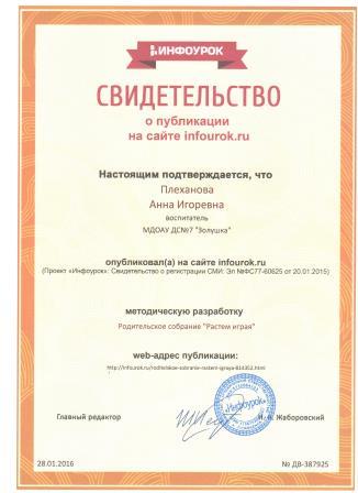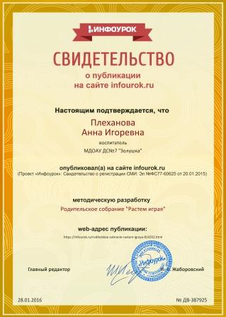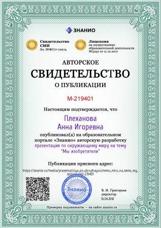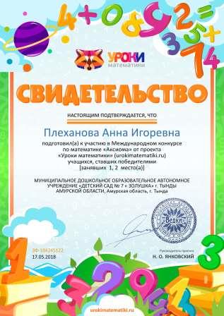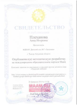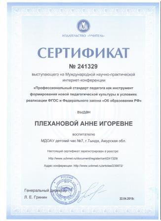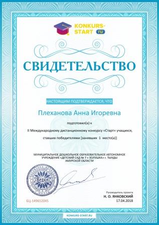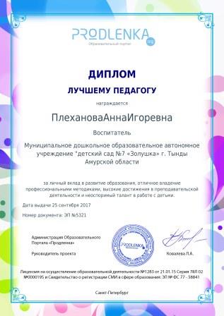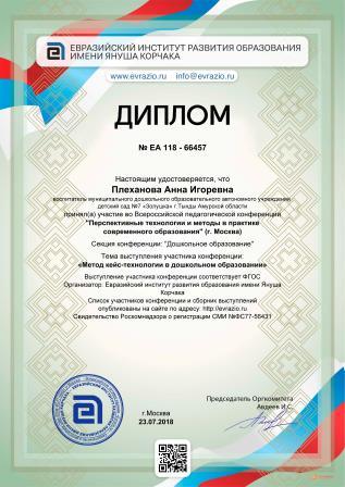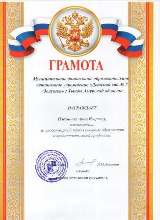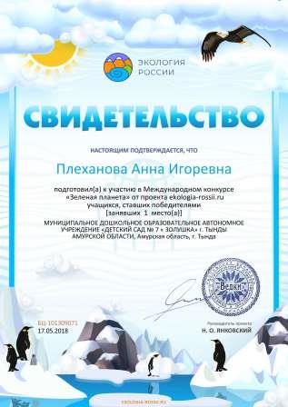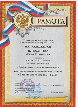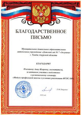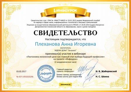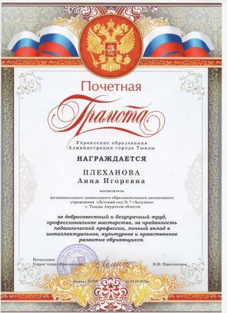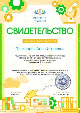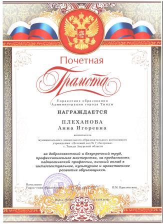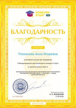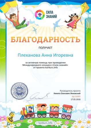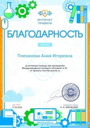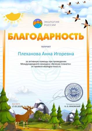 Плехановой Анны Игоревны